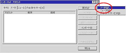 右の「追加(A)」ボタンをクリックし、「メール(M)...」を選択します。